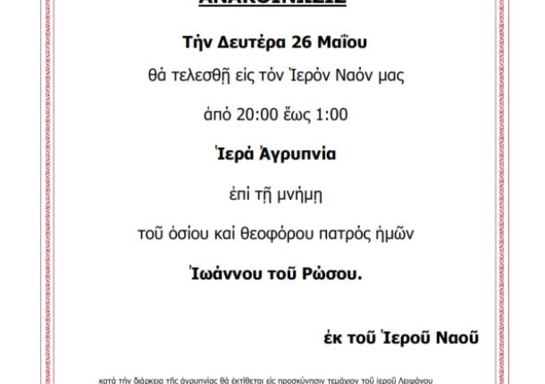 Οι Ενορίες και τα Ιδρύματα της Ι.Α.Α. μπορούν να αποστέλλουν τις Ανακοινώσεις τους στην διεύθυνση:
