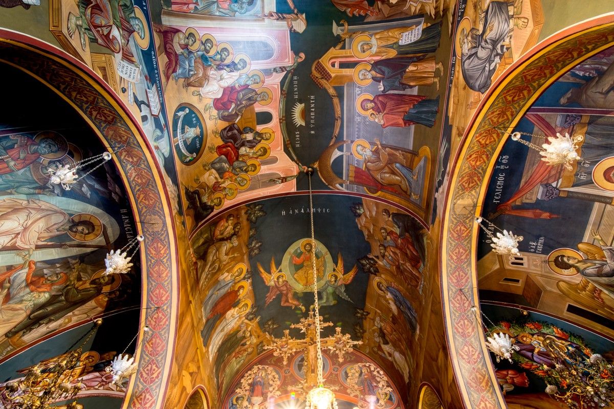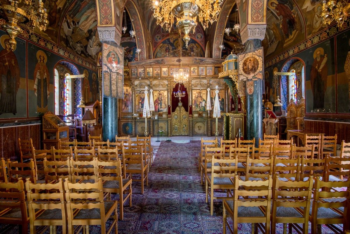 Κατά την παλαιοχριστιανική εποχή στον χώρο κτίστηκε τρίκλιτη βασιλική, που ίχνη της σώζονταν, σύμφωνα με αρχαιολογικές έρευνες, κάτω από το δάπεδο του σημερινού ναού, ενώ αργότερα, στη σημερινή επιφάνεια του εδάφους, οικοδομήθηκε άλλη, η οποία καταστράφηκε το 1827 από τον Κιουταχή, για ν’ αναστηλωθεί εκ νέου το 1833. Η σαθρότητα όμως του οικοδομήματος επέβαλε το 1960 την ανέγερση, επάνω στα παλαιά θεμέλια, του σημερινού ναού. Από την παλαιά εκκλησία διατηρήθηκε το τέμπλο, έργο του έτους 1849. Άλλες εκτενέστερες επισκευές, αναγκαίες λόγω των σεισμών του 1981 και του 1999, έγιναν πρόσφατα, με αποτέλεσμα ο ναός να λάβει τη σημερινή κομψή του μορφή.
