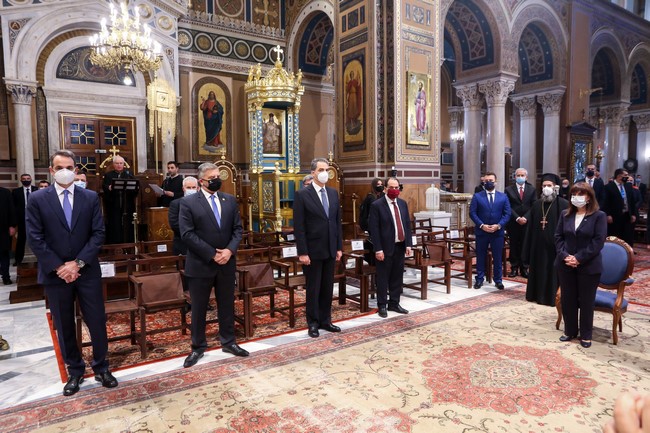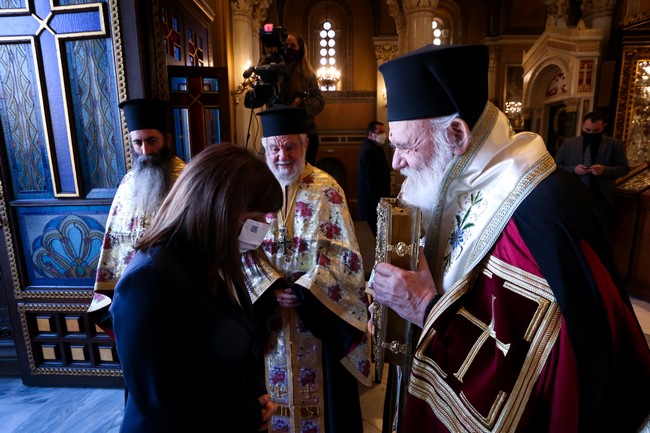 Ρεπορτάζ για το Ραδιόφωνο της Εκκλησίας: Μάκης Αδαμόπουλος Φωτογραφίες: Χρήστος Μπόνης «Το 2021 να είναι ένας χρόνος που θα μας δώσει πολλά, όχι επειδή μας τα χρωστάει, αλλά επειδή τα χρειαζόμαστε» ευχήθηκε ο Αρχιεπίσκοπος Αθηνών και πάσης Ελλάδος κ. Ιερώνυμος, από τον ι. Μητροπολιτικό ναό Αθηνών, όπου τέλεσε σήμερα το πρωί -παρουσία της Προέδρου της Ελληνικής Δημοκρατίας κ. Κατερίνας Σακελλαροπούλου- την καθιερωμένη Δοξολογία με αφορμή την έναρξη της νέας ημερολογιακής χρονιάς. Παρέστησαν, επίσης, ο Πρωθυπουργός κ. Κυριάκος Μητσοτάκης, ο Μητροπολίτης Γουινέας κ. Γεώργιος, εκπρόσωπος του Πατριάρχη Αλεξανδρείας και πάσης Αφρικής κ. Θεοδώρου στην Ελλάδα, ο Αρχιμανδρίτης Ραφαήλ Γρίβας, Έξαρχος του Παναγίου Τάφου στην Αθήνα, εκπρόσωποι ξένων Εκκλησιών, των κομμάτων και της Βουλής, των Ενόπλων Δυνάμεων, της Πυροσβεστικής Υπηρεσίας και της Ελληνικής Αστυνομίας. Τελετάρχης στην Δοξολογία ήταν ο Πρωτοσύγκελλος της Ιεράς Αρχιεπισκοπής Αθηνών Αρχιμανδρίτης Βαρνάβας Θεοχάρης, ενώ τηρήθηκαν όλα τα απαραίτητα μέτρα προστασίας από τον κορονοϊό. Ο Αρχιεπίσκοπος μετά την Δοξολογία ευχήθηκε επίσης χρόνια πολλά και ευλογημένα σε όλους.