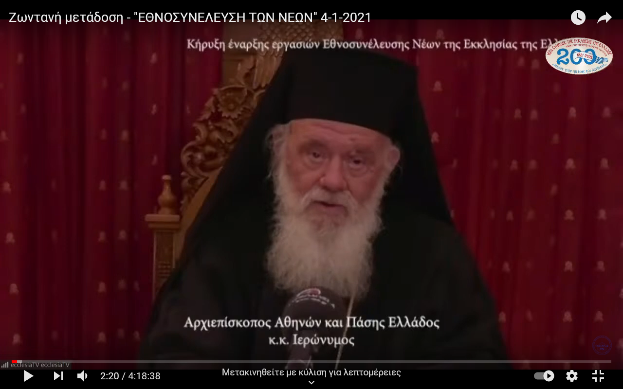 Πραγματοποιήθηκε σήμερα, Δευτέρα 4 Ιανουαρίου 2021, η «Εθνοσυνέλευση των Νέων» της Εκκλησίας της Ελλάδος μέσω της ηλεκτρονικής πλατφόρμας «zoom».