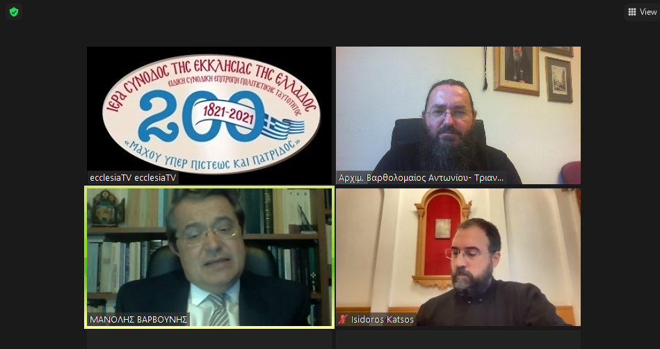 Κατά τη διάρκεια της συνεδρίασης των μελών της Εθνοσυνελεύσεως των Νέων, οι τηλεθεατές είχαν την ευκαιρία να παρακολουθήσουν συζήτηση μεταξύ του Αρχιμ. Βαρθολομαίου Αντωνίου- Τριανταφυλλίδη, Γραμματέως της Ειδικής Συνοδικής Επιτροπής Πολιτιστικής Ταυτότητος του Ελλογιμωτάτου κ. Εμμανουήλ Βαρβούνη, Καθηγητού Λαογραφίας στο ΔΠΘ και Προέδρου της Επιστημονικής Επιτροπής της Ειδικής Συνοδικής Επιτροπής Πολιτιστικής Ταυτότητος, και του Αρχιμ. Ισιδώρου Κάτσου, Δρος Νομικής και Θεολογίας.