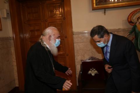 Εθιμοτυπική επίσκεψη στον Αρχιεπίσκοπο Αθηνών και πάσης Ελλάδος κ. Ιερώνυμο πραγματοποίησε σήμερα το πρωί ο υφυπουργός Παιδείας κ. Άγγελος Συρίγος.