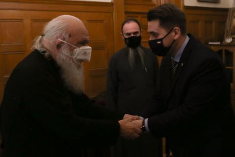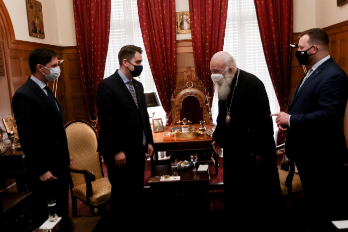 Ο πρόεδρος επισκέφθηκε τον Αρχιεπίσκοπο συνοδευόμενος από τον Πρέσβη της Πολωνίας στην Αθήνα κ. Άρθουρ Λόμπαρτ και τον Πρόεδρο του Ιδρύματος «Αγία Μαρίνα» που δραστηριοποιείται στην προώθηση του ελληνικού πολιτισμού, της ελληνικής γλώσσας και της ορθοδοξίας κ. Πάτρικ Πανάσικ.