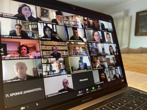 Η εκδήλωση πραγματοποιήθηκε με αφορμή την ολοκλήρωση των προγραμμάτων πράξης «Ανάπτυξη Ικανοτήτων Ανθρώπινου Δυναμικού σε Υπηρεσίες Κοινωνικής Πρόνοιας με Έμφαση στις Δομές της Εκκλησίας 2017-2021» και συμμετείχαν ο Αναπληρωτής Πρόεδρος & Νόμιμος Εκπρόσωπος του Ι.Π.Ε. Μητροπολίτης Ιλίου, Αχαρνών και Πετρουπόλεως κ. Αθηναγόρας, ο Μητροπολίτης Νέας Ιωνίας, Φιλαδελφείας, Ηρακλείου και Χαλκηδόνος κ. Γαβριήλ, μέλος του Ιδρύματος, ο Πρωτοσύγκελλος της Αρχιεπισκοπής Αθηνών, Αρχιμανδρίτης Βαρνάβας Θεοχάρης, ταμίας του ΙΠΕ και οι μητροπολίτες Εδέσσης, Πέλλης και Αλμωπίας κ. Ιωήλ, Αιτωλίας και Ακαρνανίας κ. Κοσμάς, Θηβών και Λεβαδείας κ. Γεώργιος, Μαρωνείας και Κομοτηνής κ. Παντελεήμων, Ιωαννίνων κ. Μάξιμος, Νέας Κρήνης και Καλαμαριάς κ. Ιουστίνος, Λήμνου και Αγίου Ευστρατίου κ. Ιερόθεος, Κισάμου και Σελίνου κ. Αμφιλόχιος και Ρόδου κ. Κύριλλος. Επίσης, η Ειδική Γραμματέας του Υπουργείου Ανάπτυξης και Επενδύσεων κα Νίκη Δανδόλου, εκπρόσωποι τοπικών αρχών, ακαδημαϊκοί, επαγγελματίες ψυχικής, υγείας, επιμορφωτές. Την εκδήλωση συντόνιζε ο αναπληρωτής Διευθυντής του Ιδρύματος Αρχιμανδρίτης Θεολόγος Αλεξανδράκης.