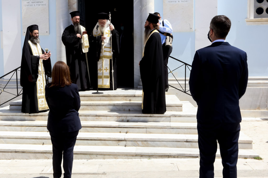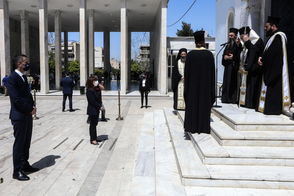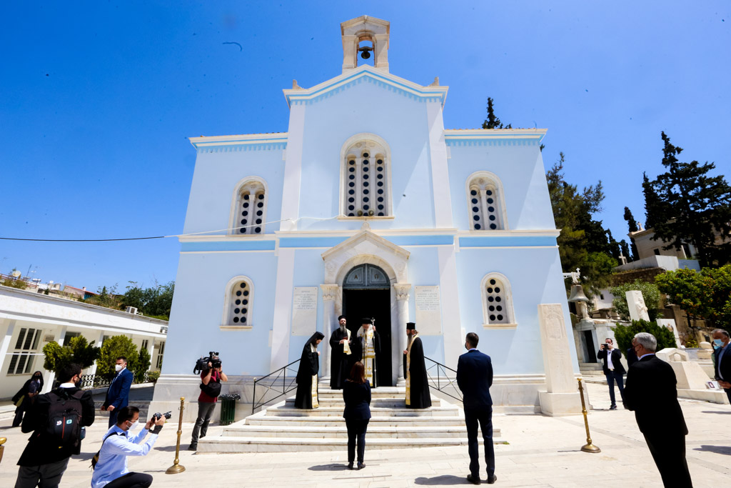 Τρισάγιο υπέρ αναπαύσεως της ψυχής των θυμάτων από την πανδημία, τέλεσε σήμερα, Μεγάλη Παρασκευή, ο Μακαριώτατος Αρχιεπίσκοπος Αθηνών και πάσης Ελλάδος κ. Ιερώνυμος στο Α’ Κοιμητήριο Αθηνών. Στην επιμνημόσυνη δέηση παρέστησαν η Πρόεδρος της Δημοκρατίας κυρία Κατερίνα Σακελλαροπούλου και ο Δήμαρχος Αθηναίων κ. Κώστας Μπακογιάννης