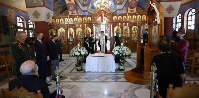 Στο μνημόσυνο παρέστησαν ο υπουργός Εθνικής Άμυνας κ. Νικόλαος Παναγιωτόπουλος, ο υφυπουργός Εθνικής Άμυνας κ. Αλκιβιάδης Στεφανής, ο Αρχηγός ΓΕΕΘΑ Στρατηγός Κωνσταντίνος Φλώρος, ο Αρχηγός ΓΕΑ Αντιπτέραρχος (Ι) Γεώργιος Μπλιούμης, ο Αρχηγός ΓΕΣ Αντιστράτηγος Χαράλαμπος Λαλούσης και ο Αρχηγός ΓΕΝ Αντιναύαρχος Στυλιανός Πετράκης ΠΝ., ενώ τον Αρχιεπίσκοπο συνόδευε ο Πρωτοσύγκελος της Αρχιεπισκοπής Αρχιμανδρίτης Βαρνάβας Θεοχάρης.