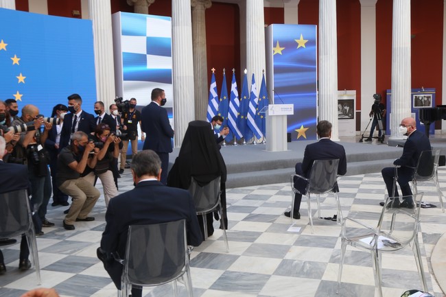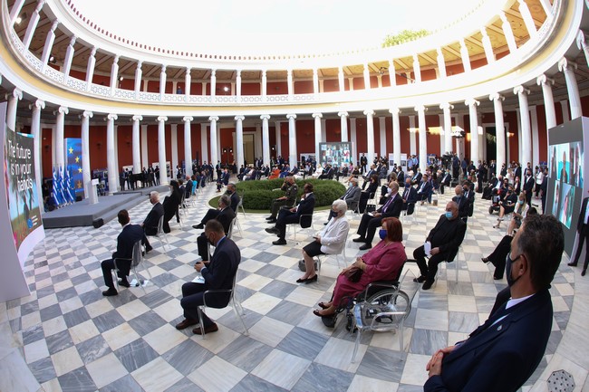 Στην εκδήλωση ομιλίες πραγματοποίησαν ο πρωθυπουργός Κυριάκος Μητσοτάκης, ο πρόεδρος του Ευρωπαϊκού Κοινοβουλίου Ντέιβιντ Σασόλι, ο πρόεδρος του Ευρωπαϊκού Συμβουλίου Σαρλ Μισέλ και ο αναπληρωτής υπουργός Εξωτερικών Μιλτιάδης Βαρβιτσιώτης.