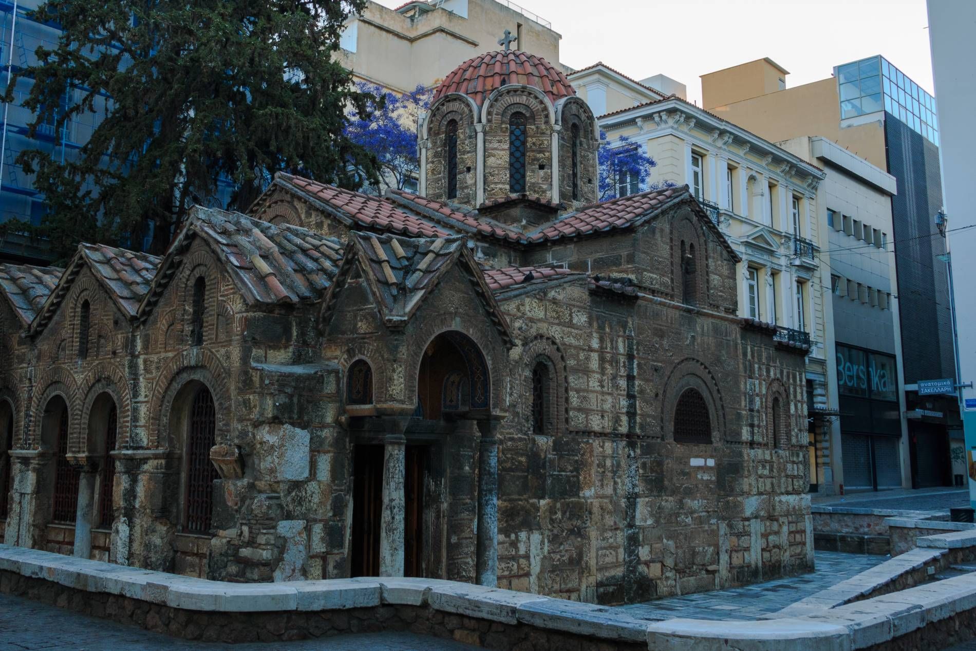 Οι κίονες είναι παλαιοχριστιανικής εποχής. Η τοιχοποιία στα χαμηλά μέρη είναι από δόμους, που μερικοί προέρχονται από παλαιοχριστιανικά μνημεία και έχουν τοποθετηθεί κατά τρόπο που να σχηματίζουν σταυρούς, ενώ στα ανώτερα έχει γίνει με το γνωστό πλινθοπερίκλειστο σύστημα. Είναι κτίσμα του 11ου αι. (λίγο μετά το 1050) και, κατά την παράδοση, οικοδομήθηκε στη θέση παλαιότερης εκκλησίας, κτίσματος και αυτής της Αθηναίας αυτοκράτειρας Ευδοκίας (5ος αι), γι’ αυτό και λεγόταν και «Εκκλησία της Βασιλοπούλας».