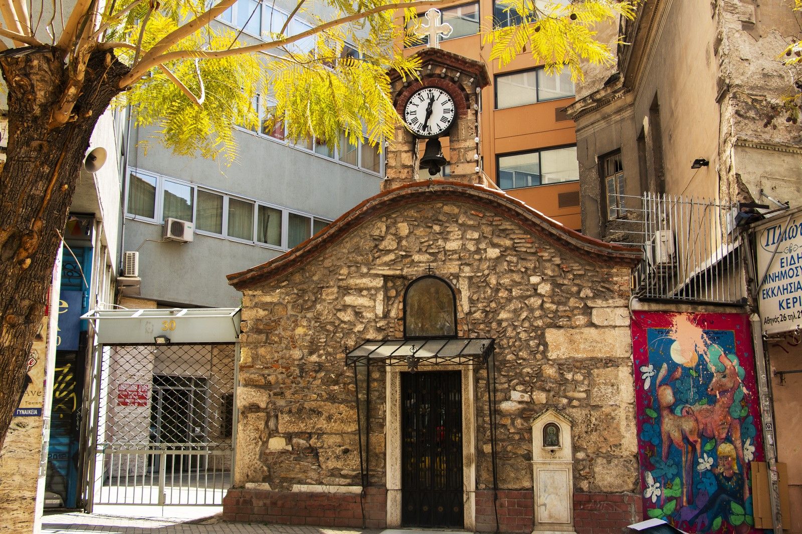 Βρίσκεται στην οδό Αθηνάς, αριθ. 28. Είναι μικρή, διαστάσεων 11×3,50 μ., μονόκλιτη καμαροσκέπαστη βασιλική. Στη βόρεια και νότια πλευρά έχει από ένα χαμηλό τυφλό τόξο. Η ανέγερσή της τοποθετείται στα χρόνια της τουρκοκρατίας. Μεταγενέστερα το νότιο τόξο ανοίχθηκε, και έτσι η εκκλησία επικοινωνεί με νεότερη στενή προσθήκη. Μεταγενέστερο είναι και το μεγάλο παράθυρο της βόρειας πλευράς.