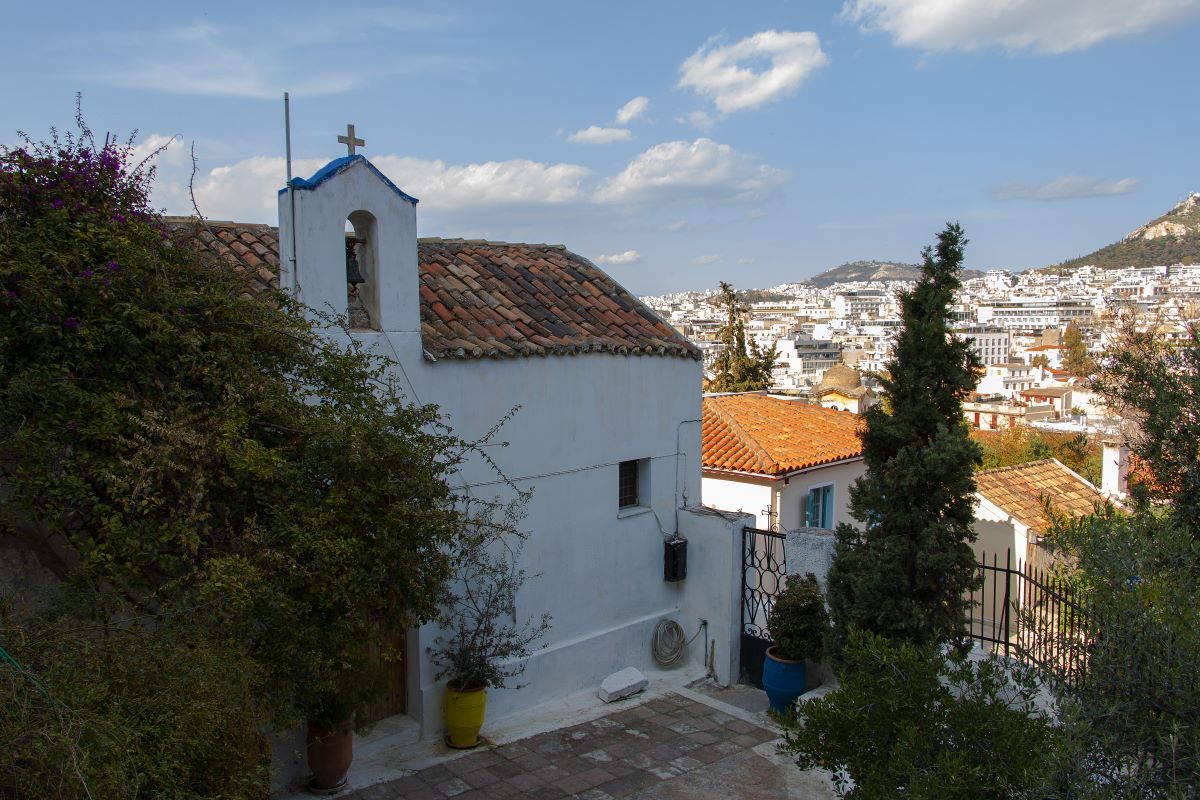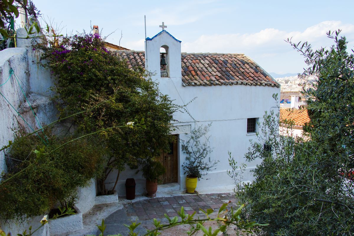 Βρίσκεται κοντά στη βορειοανατολική πλευρά του βράχου της Ακρόπολης, στη συμβολή του μονοπατιού της αρχής των Αναφιώτικων (αριθ. 1) και της οδού Στράτωνος. Είναι μονόκλιτη βασιλική, με δίρριχτη νεότερη κεραμοσκεπή εξωτερικά. Στο εσωτερικό, η θολωτή οροφή στους μακρούς τοίχους στηρίζεται σε τυφλά τόξα, και εγκάρσια με άλλα τόξα. Εξαιτίας της διαμόρφωσης του εδάφους, έχει βορειοανατολικό προσανατολισμό. Επάνω στην κύρια είσοδο, που βρίσκεται νότια, υπάρχει ανάγλυφο επιστύλιο με σταυρούς και ρόδακες.