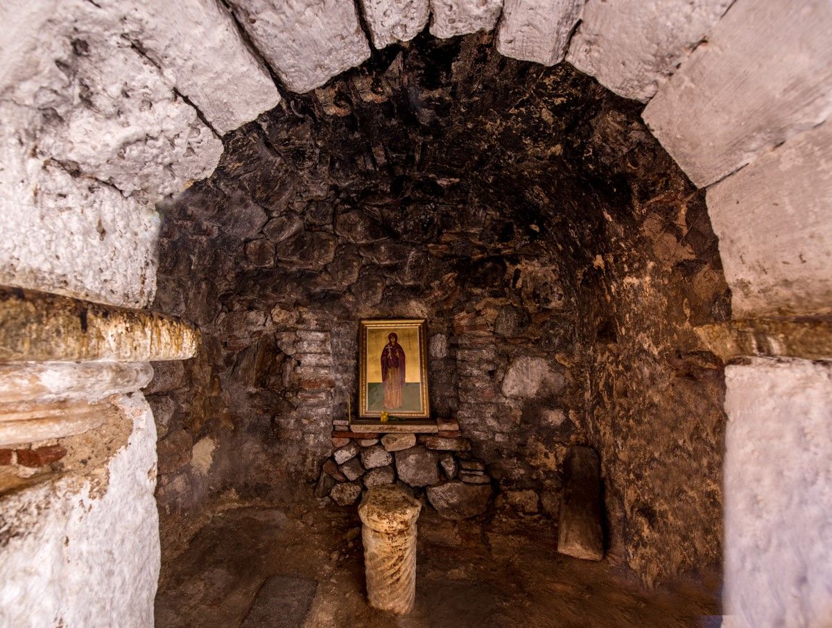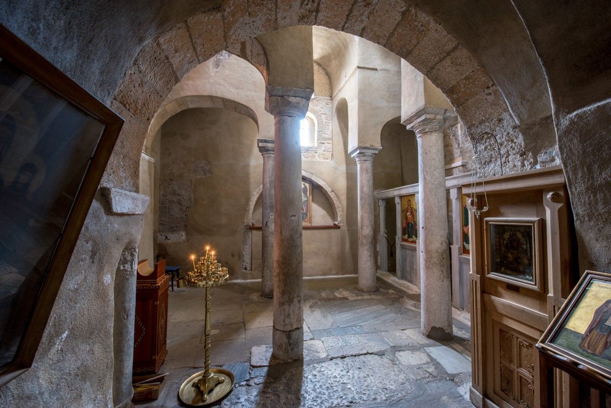Κτίσθηκε μεταξύ των ετών 1050 και 1150. Επειδή μεταγενέστερα έγινε επέκταση ανατολικά και δυτικά, αναλλοίωτο διατηρείται μονάχα το κεντρικό τμήμα της βόρειας και της νότιας πλευράς. Ακόμα, στη νότια πλευρά, υπάρχει μικρό παρεκκλήσιο, που ένα μέρος του εκτείνεται στο κοίλωμα του βράχου.