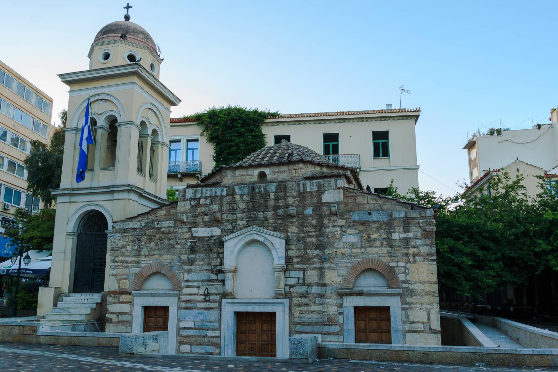 Βρίσκεται στην πλατεία Μοναστηρακίου, στη συμβολή των οδών Μητροπόλεως και Αθηνάς, απέναντι από τον Σταθμό του Ηλεκτρικού Σιδηροδρόμου. Λόγω γεωλογικών μεταβολών και μεταγενέστερης διαρρύθμισης του εδάφους της πλατείας και των παρακειμένων οδών, σήμερα η εκκλησία κατά το 1/3 περίπου βρίσκεται κάτω από την επιφάνεια του.
