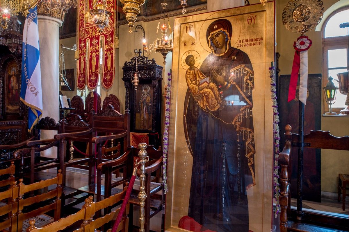 Με την Παντάνασσα σχετίζονται και δύο μεγάλες προσωπικότητες της Εκκλησίας: Εδώ εκάρη μοναχός ο όσιος Λουκάς ο εν Στειρίω (896-953) και υπηρέτησε ως διάκονος ο άγιος Νεκτάριος ο Πενταπόλεως ο εν Αιγίνη (μεταξύ των ετών 1881-1885).