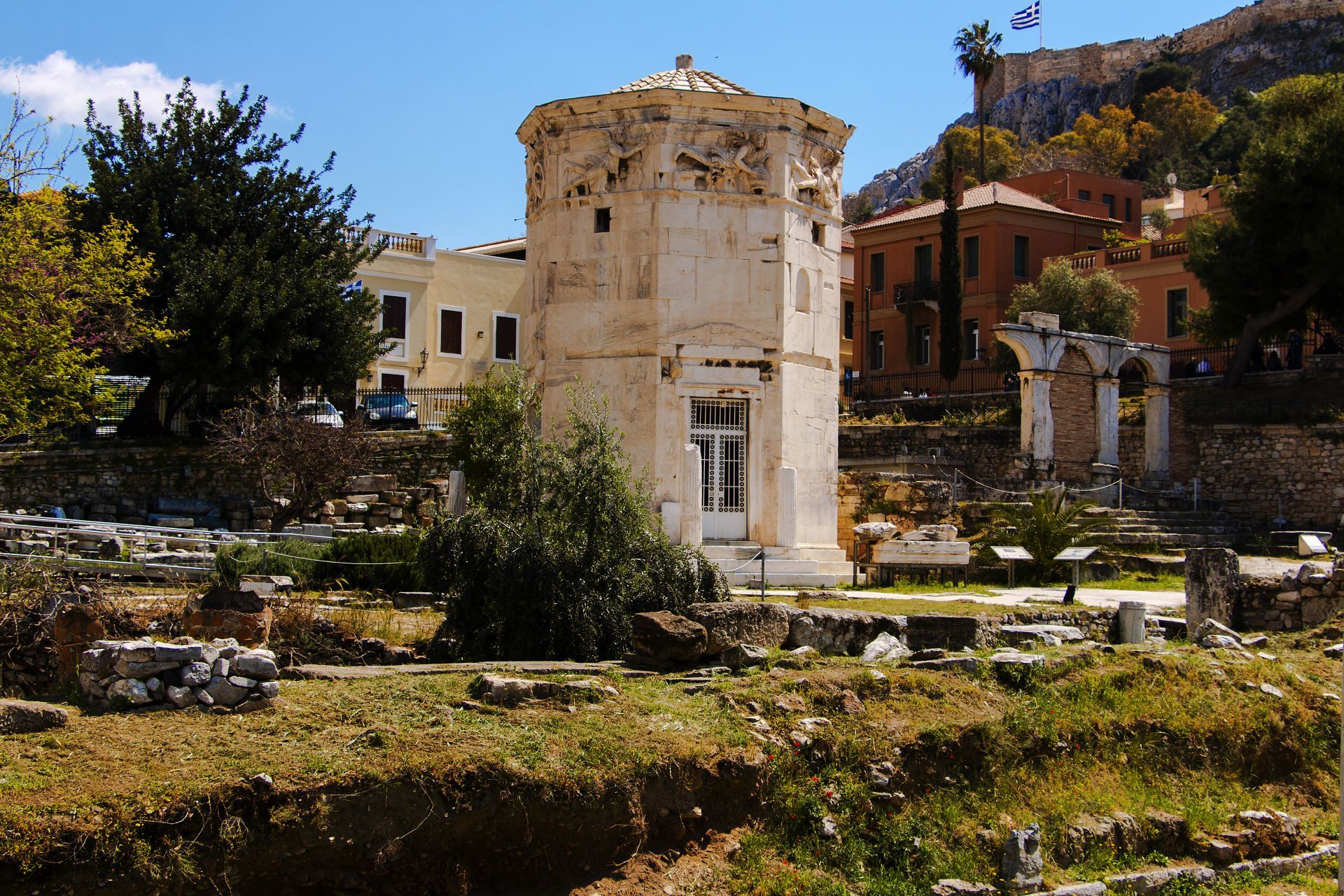 Ας σημειωθεί ότι το κτίσμα αυτό, που έχει μορφή οκταγωνικού πύργου, ίδρυσε γύρω στο 50 π.Χ. ο αστρονόμος Ανδρόνικος Κυρρήστης (από την Κύρο της Β. Συρίας) ως μετεωρολογικό σταθμό και ρολόι για τη Ρωμαϊκή αγορά που βρισκόταν εκεί κοντά. Στα χρόνια της Τουρκοκρατίας μετεβλήθη σε τεκέ (μουσουλμανικό παρεκκλήσι), γεγονός που το διέσωσε από την αρπακτική μανία του Έλγιν.